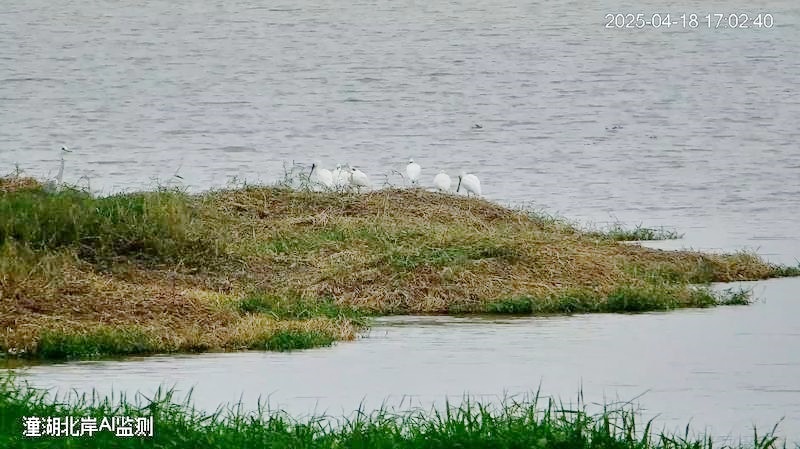 同步记录的黑脸琵鹭群尤为珍贵,有着“鸟界大熊猫”的美誉。监测显示,黑脸琵鹭在沼泽湿地上停歇补给,用匙状喙来回扫动觅食和梳理羽毛,其标志性的黑色匙状喙与白色羽衣形成鲜明对比。广东惠州潼湖国家湿地公园管护中心相关负责人表示,“据香港观鸟会发布的‘全球黑脸琵鹭同步普查2025’最新数据,黑脸琵鹭全球数量仅存约7000只,此次潼湖国家湿地公园记录到7只停歇,这一罕见集群现象,说明历年来潼湖湿地的生态功能保护成效逐步显现”。